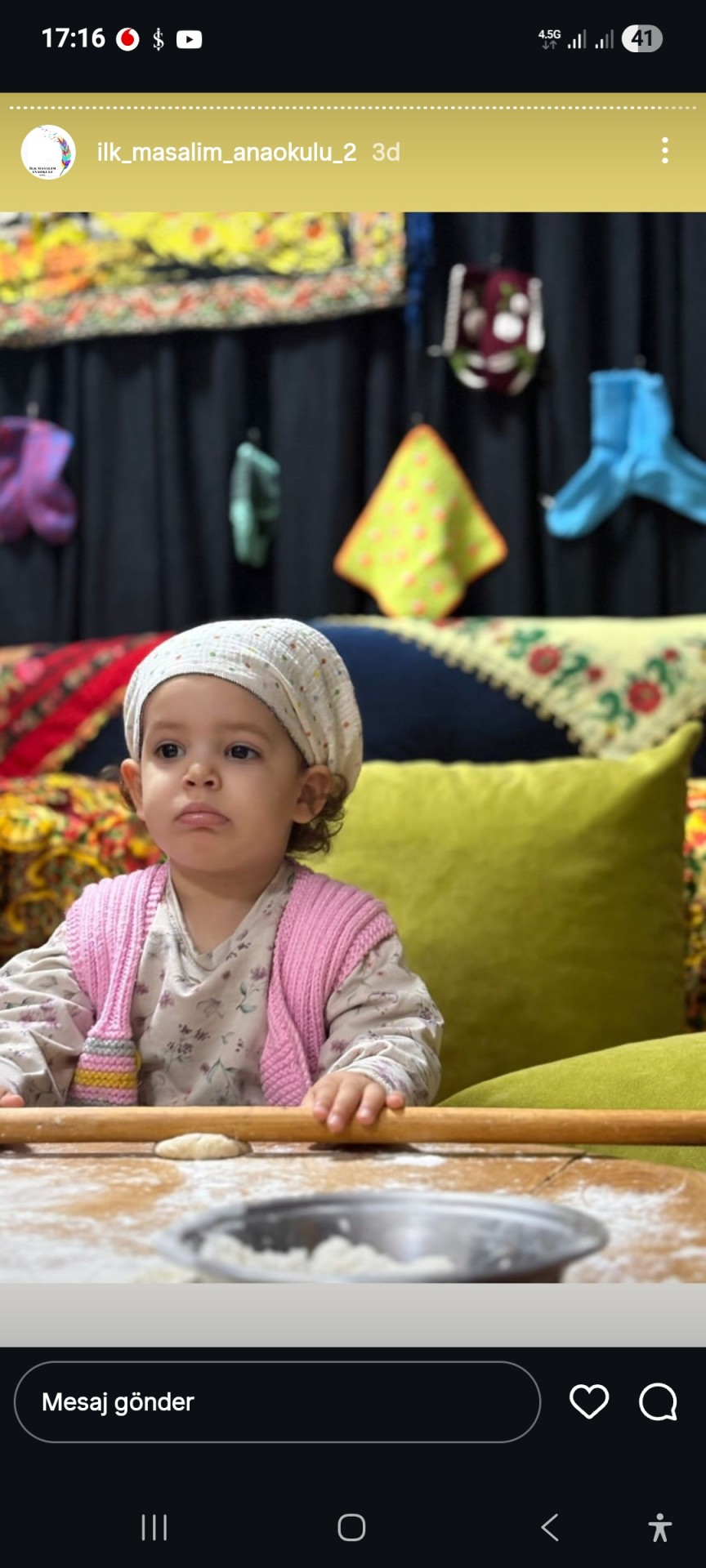 Merhaba ben Mavi Gel.. Annem ve babam benim güzel anılar biriktirmek için kaydımı yaptı. Şanslı olabileceğimi düşündüler. İlk kez girdiğim ortamlar da hemen kendimi gösteremem becerilerimi belli edemem. Önce biraz çekinirim ama ısındıkça daha rahat hareket edebilirim. Kitapları çok severim kendi kendime hikaye okumaya çalışırım.????Pek yemek seçmem oyun oynamayı severim. Daha çok kamyon, tamir aleti, top gibi oyuncaklar ilgimi çeker. Şu an için benden bu kadar sevgiler... ????